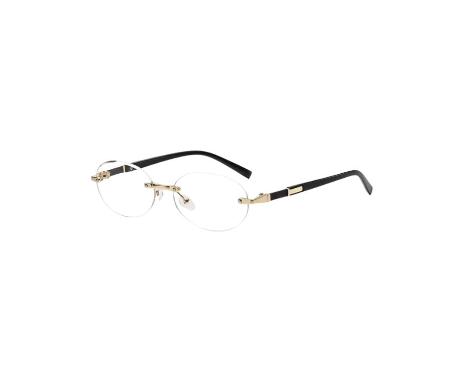 The AZUR redefines modern minimalism with its rimless oval lenses and gold-accented temples — a timeless statement for those who move with quiet confidence. Its lightweight frame and dark lenses strike the perfect balance between edge and elegance, making it your go-to piece from sunrise drives to sunset views.